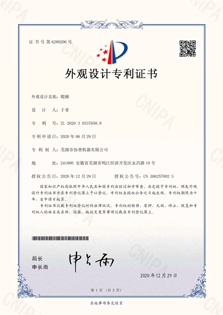 外觀設(shè)計(jì)專(zhuān)利證書(shū)