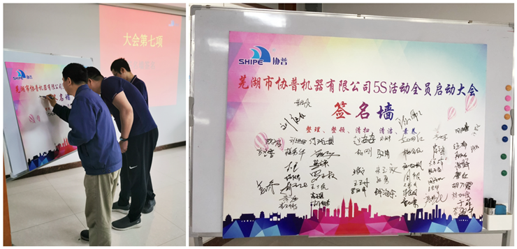 全員宣讀完誓詞后大會進(jìn)入最后一項(xiàng):簽名墻簽名。全體協(xié)普成員陸續(xù)上臺落款簽名,表達(dá)對公司”5S” 管理改善活動會給予全力落實(shí)推進(jìn)。