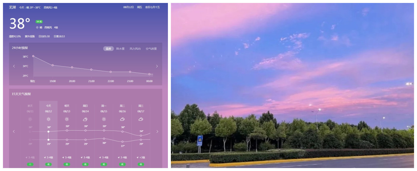 另外,最近的晚霞絢麗多彩,大家下班路上或是飯后散步可以駐足欣賞,酷暑炎熱中也有不可錯失的驚喜哦。