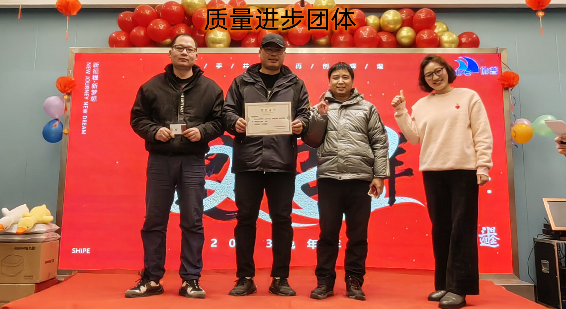 趙總致辭后,公司為2022年度表現(xiàn)優(yōu)異的團(tuán)隊(duì)和個人進(jìn)行了表彰。人才是公司生存和發(fā)展之本。公司發(fā)展的每一步都離不開每個協(xié)普人的努力和付出。本年度公司共評選出三名優(yōu)秀員工——陶海基、楊剛、徐金鳳,“2022年度突出貢獻(xiàn)獎”——張傳東、桂佳俊,“2022年度敬業(yè)獎”——陳阿龍,“年度宣傳小能手”——宋玉秋;“協(xié)普年度出差達(dá)人”——胡金龍,“年度最具成長力員工”——王傳銀,“5S進(jìn)步團(tuán)體”——技術(shù)部、車間鉚焊班,“質(zhì)量進(jìn)步團(tuán)體”——質(zhì)量部,“協(xié)普奉獻(xiàn)獎”——劉庭玉。