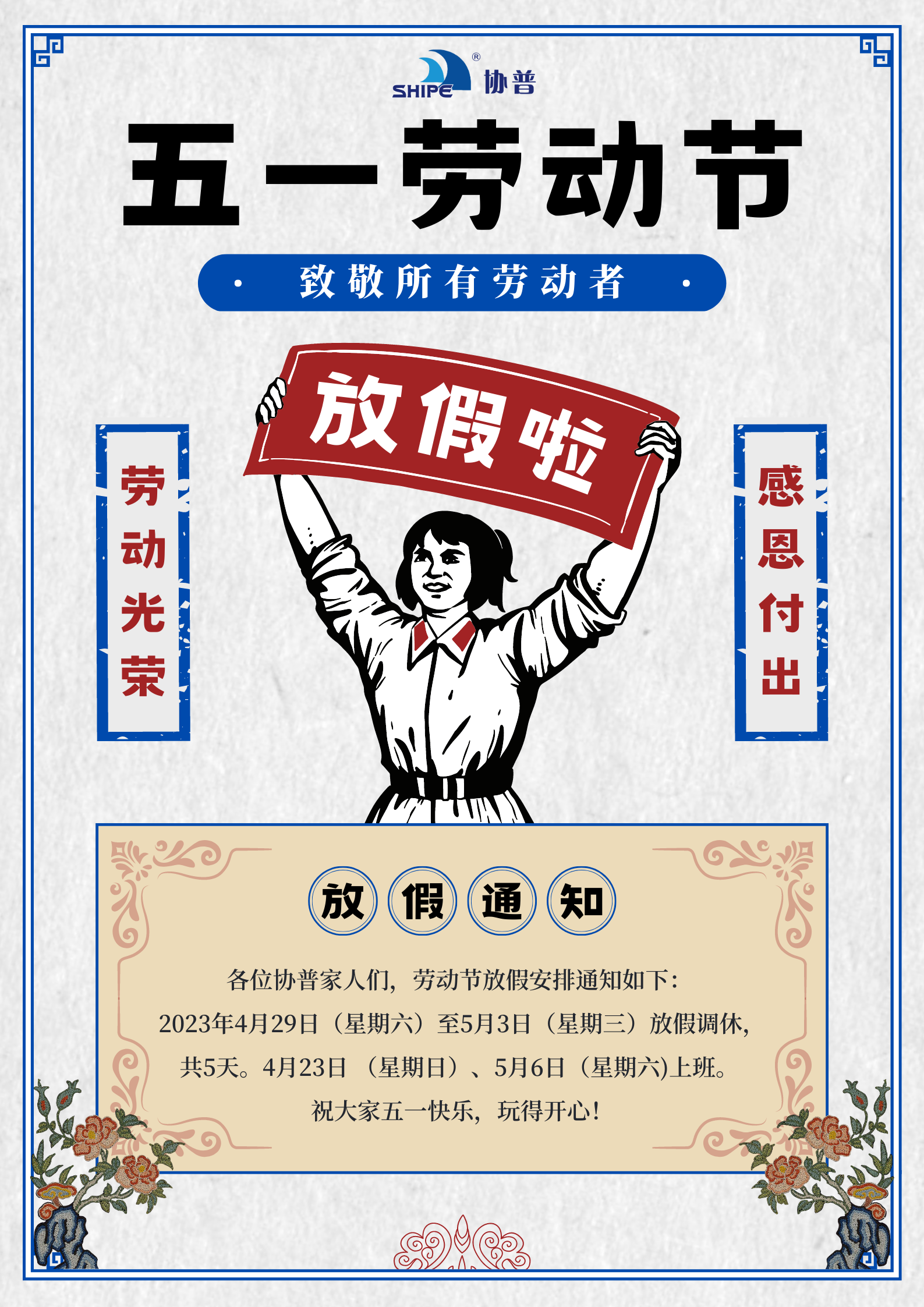 協(xié)普家人們,讓我們工作時(shí)全力以赴,下班后自在浪漫。祝大家擁有一個愉快的五一小長假!
