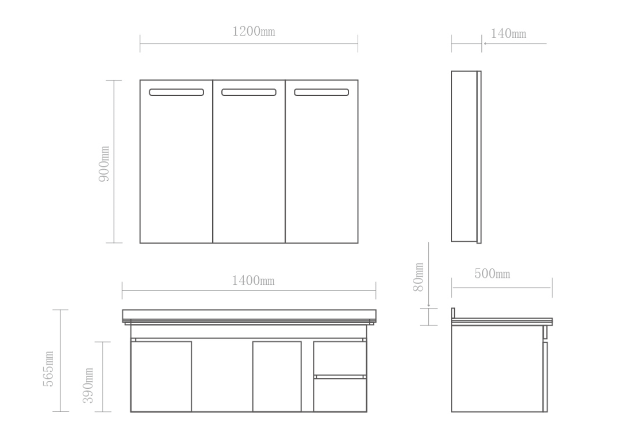 尺寸:化妝鏡 1200X900X140 (mm) + 浴室柜 1400X500X565 (mm)